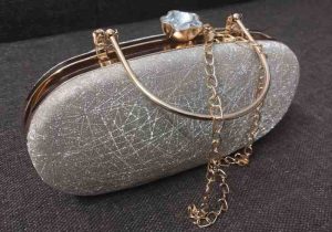Premium Clutch Bag, Silver Glitter, Metal Frame wi...